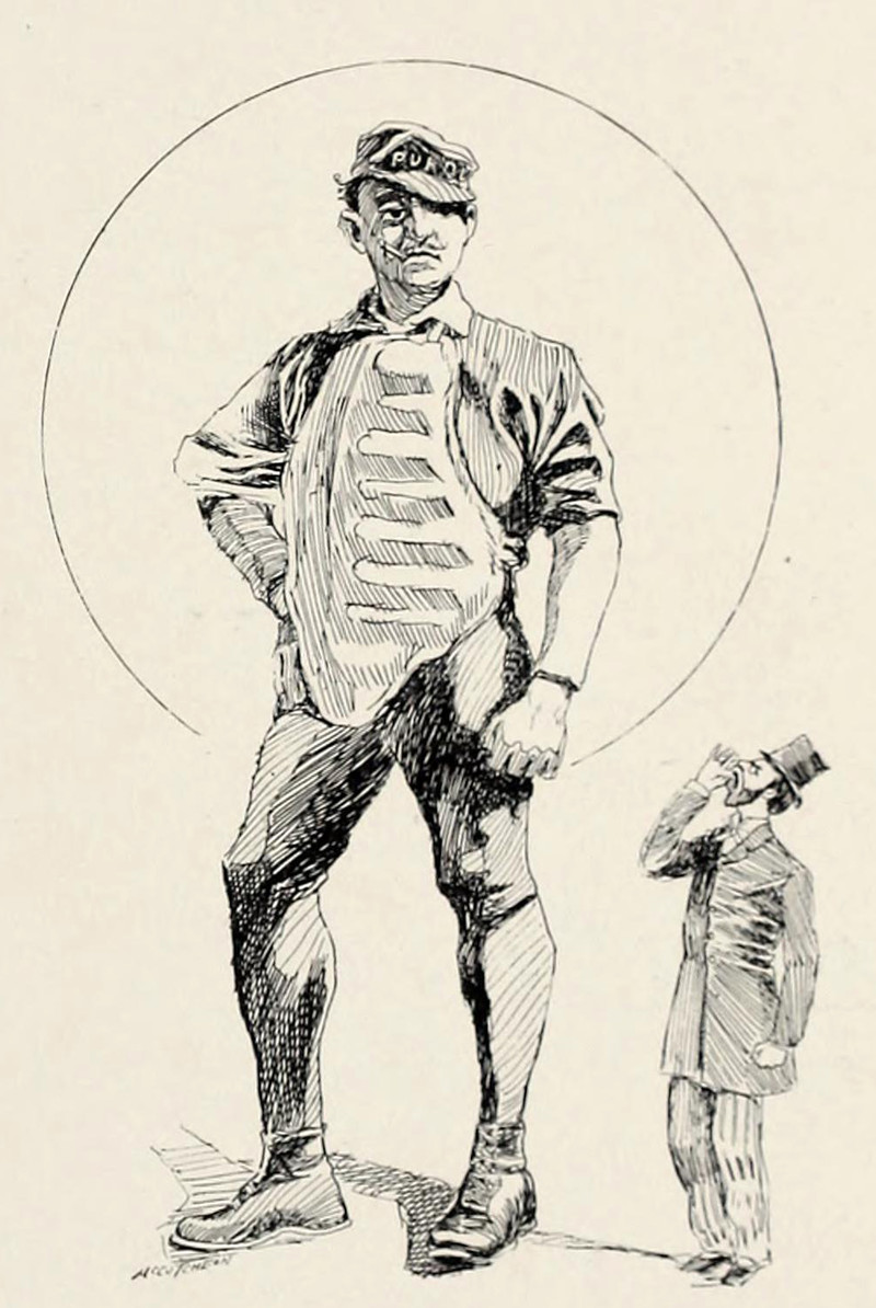Simultaneously bear-like and owl-like. From Collier's, 1915.