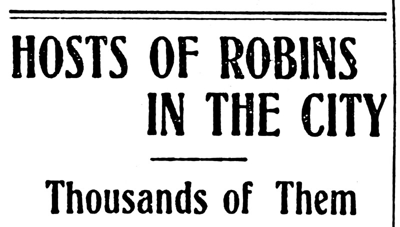 "Hosts of robins in the city. Thousands of them." From The Duluth Evening Herald, 1908.