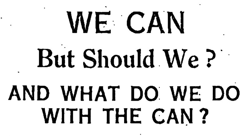 "We can but should we? And what do we do with the can?" From The Children's Newspaper, 1932.