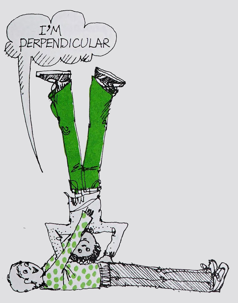 "I'm perpendicular." From The Canadian Spelling Program 6 by Thomas and Braun, 1979.