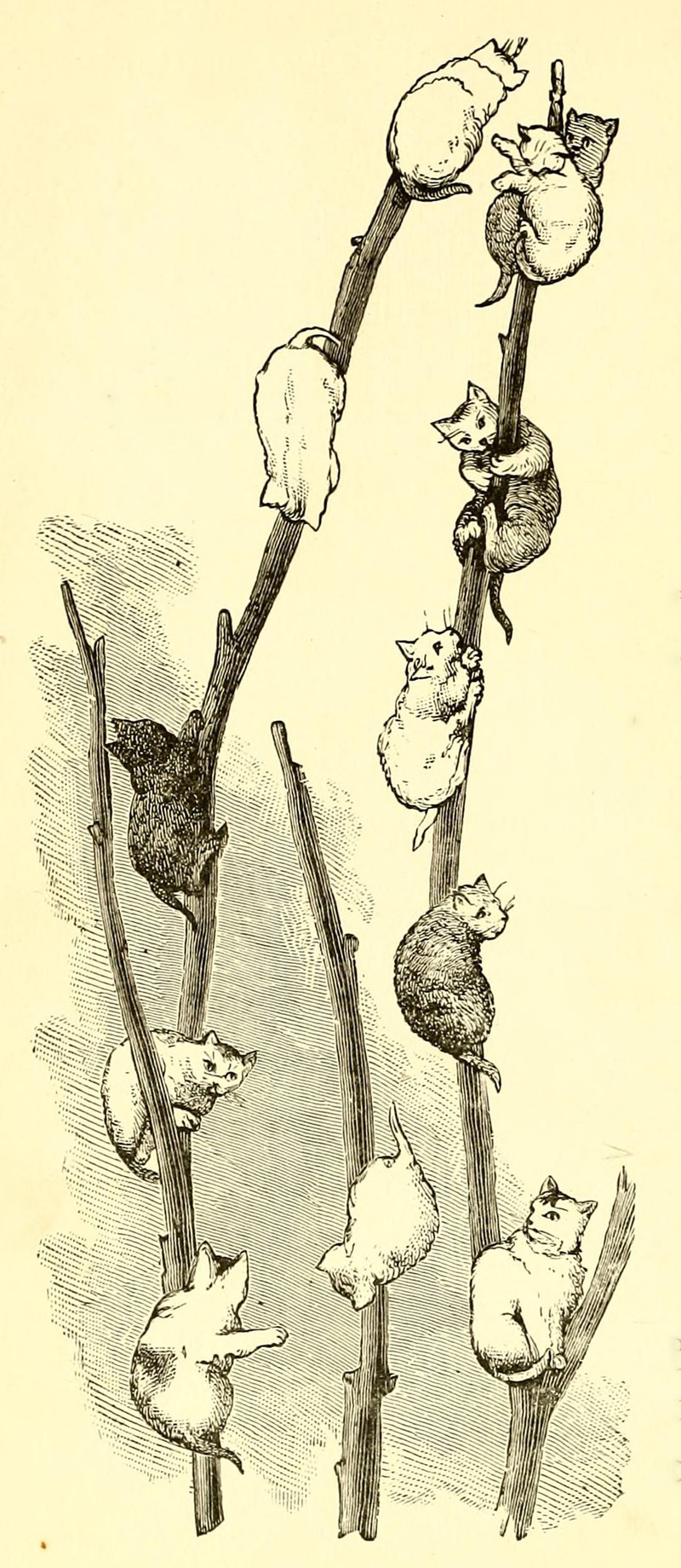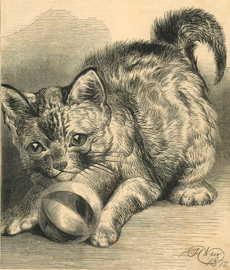 A cat mother to ducklings. From St. Nicholas magazine, 1888.