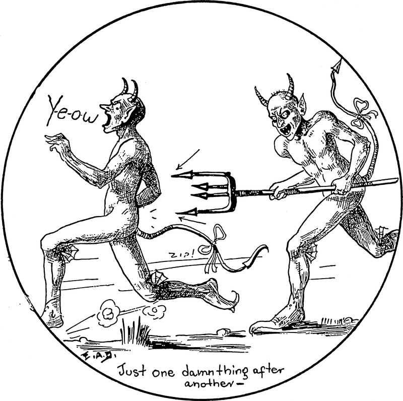 Offering ribs to the devil. From Earlham College's 1909 yearbook.