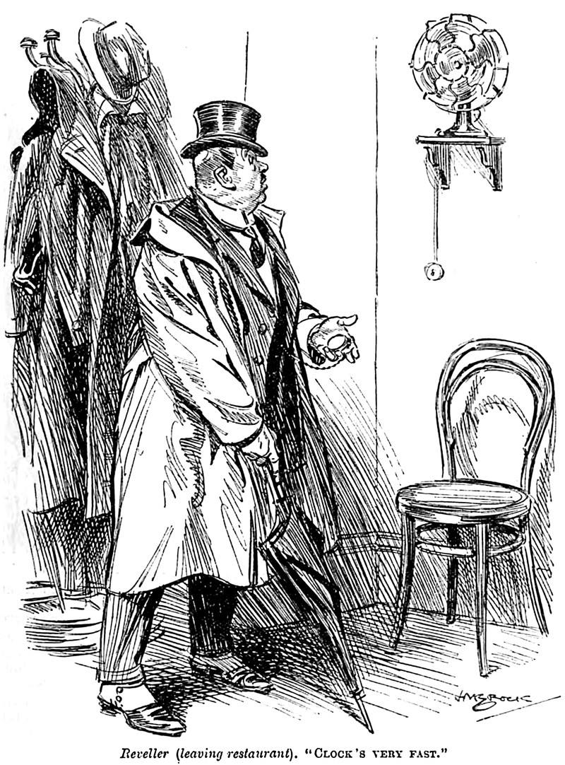 "Clock's very fast." From Punch, 1922.