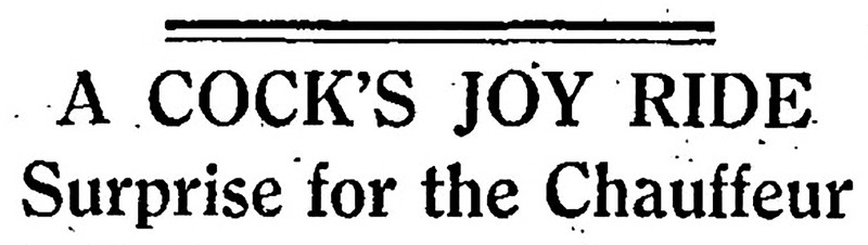 "A cock's joy ride. SUrprise for the chauffeur." From The Children's Newspaper, 1924.