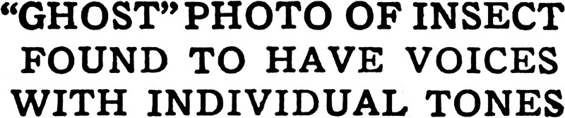 "'Ghost' photo of insect found to have voices with individual tones." From Popular Mechanics, 1931.