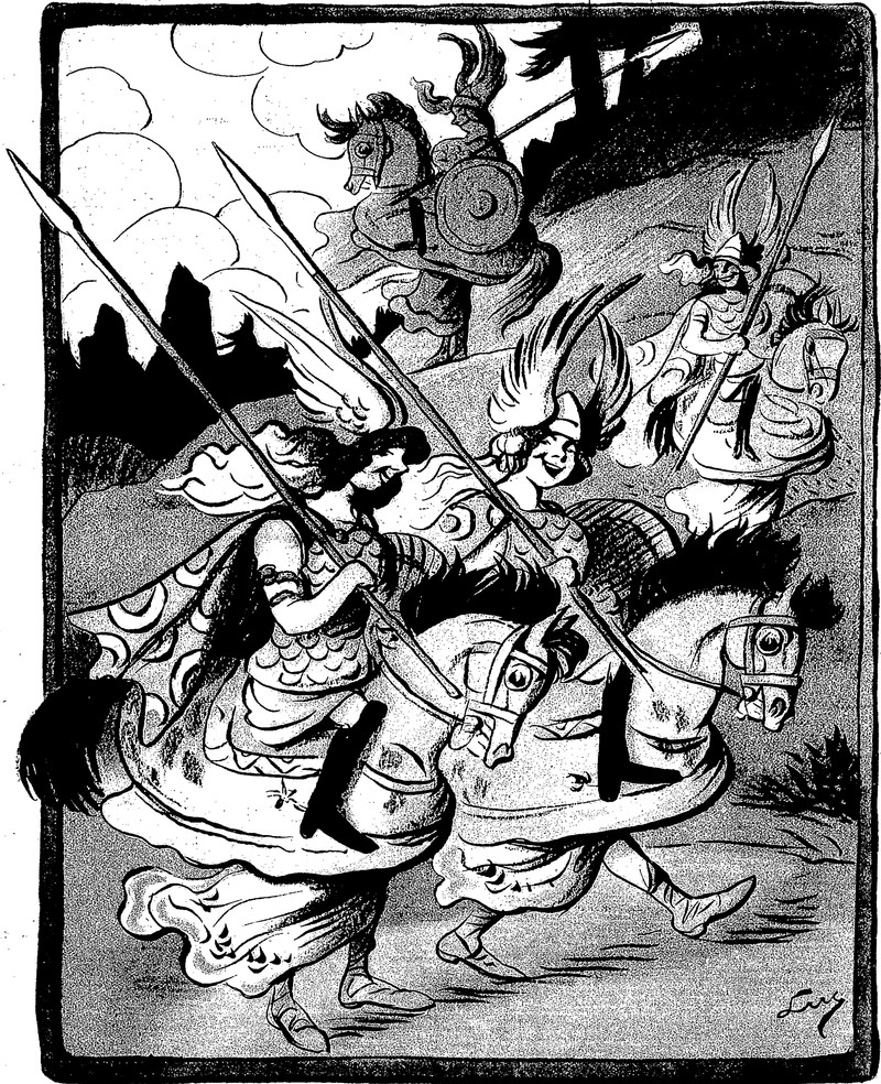 Joan of Arc accidentally slices the angel Gabriel in two. From Le Journal Amusant, 1896.