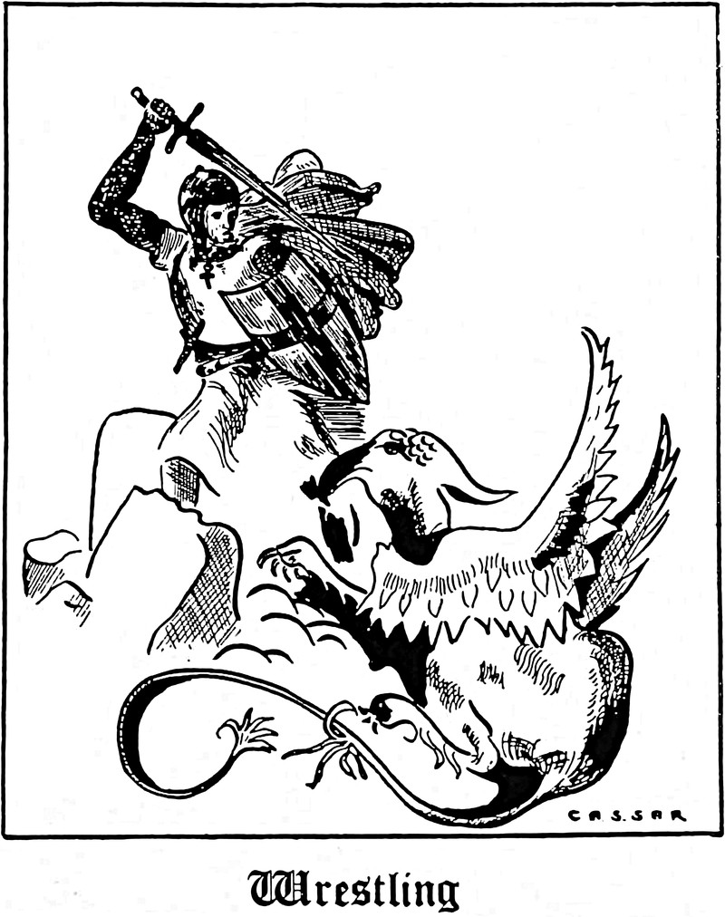 Wrestling, dragon slaying … same difference. From Kent State's 1933 yearbook (our restoration).