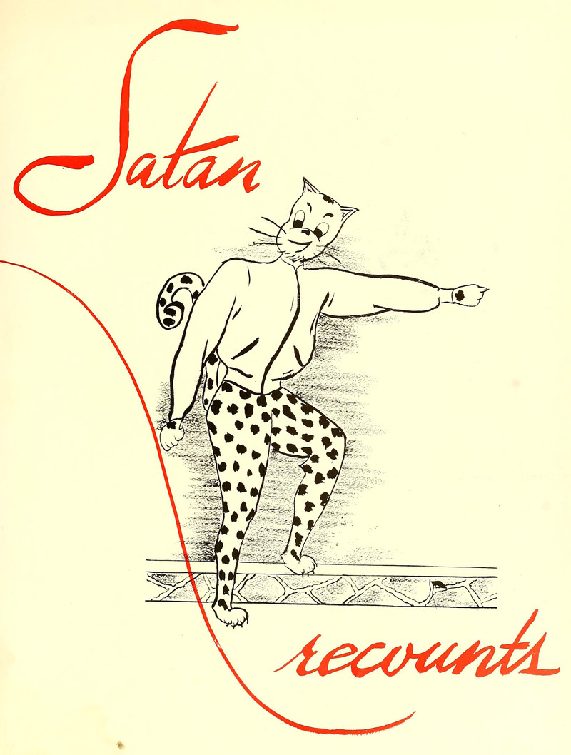 Satan in the form of a cat presents an entire Western Carolina yearbook of 1953.