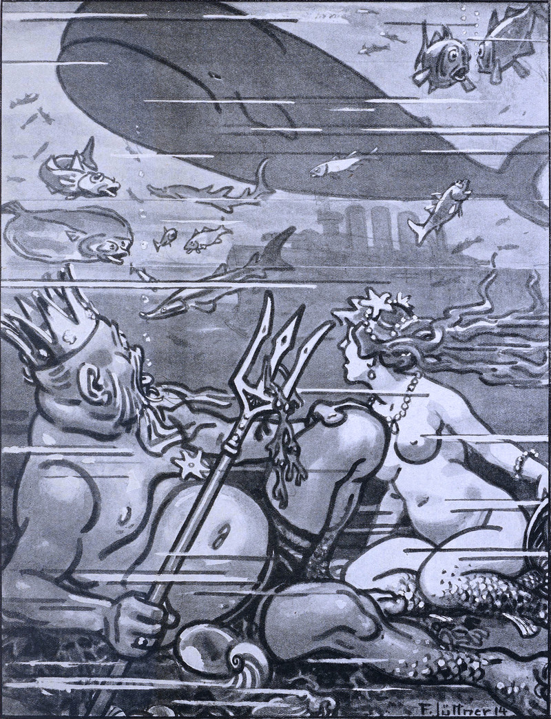 Mermaid poaching. From Fliegende Blätter, 1925.