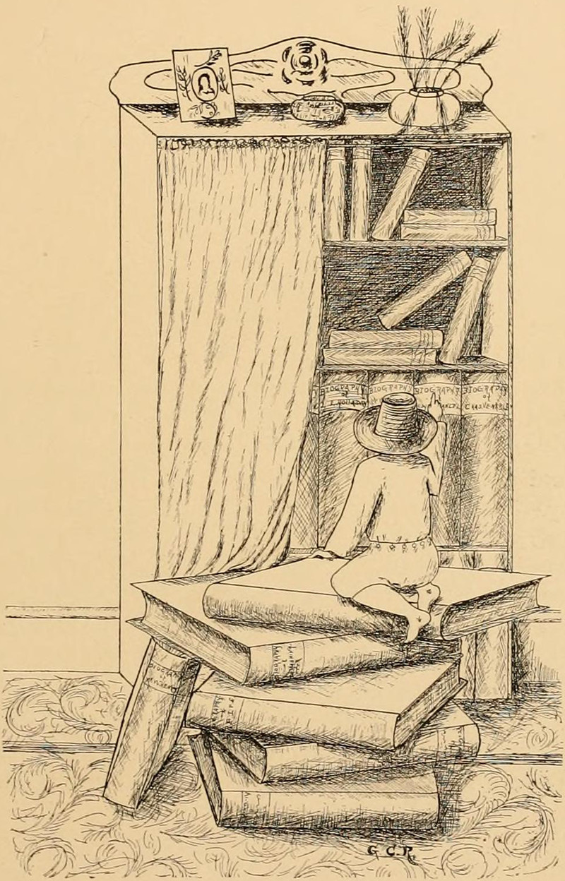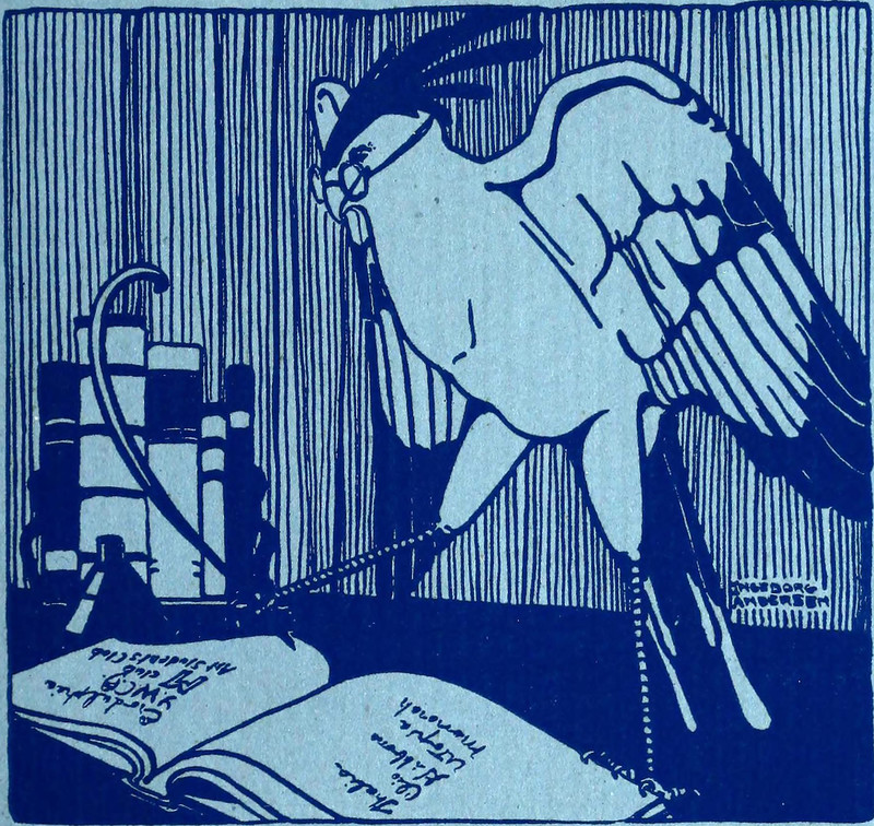 Catching wisdom between two kites, from atop a mountain of books. From Henderson's 1910 yearbook.