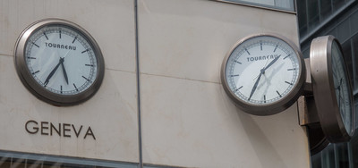 At 7:35, the "Geneva" clock is two hours early and the others are five hours early. (By the way, in the city of Geneva itself, the time would have been 1:35.) This temporal anomaly in Manhatten was documented by Jag9889. Though we weren't on location to discover the exact cause of this timely weirdness, we spotlight this photo to help hone the insights of would-be investigators of temporal anomalies. The more clocks one sees that are "on the fritz" (Fritz being the German clockmaker who first went "cuckoo"), the better attuned one will be to time warps in the wild.