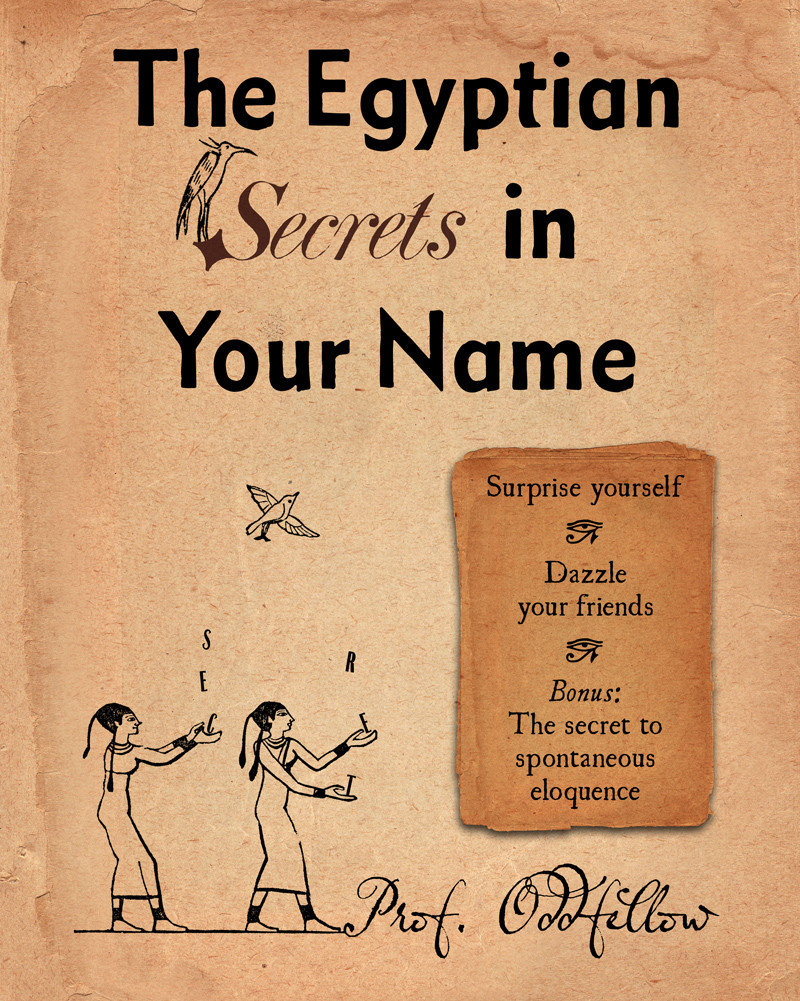 The quest to decode the individual letters in a name goes way, way back. Our research triggered a realization that every name encodes an ancient Egypitan poem. As the original publication of our findings is freshly out of print, and as it was originally intended exclusively for professional magicians and mentalists, we were inspired to offer a revised and expanded edition containing twice the number of example readings, so that anyone can perform the technique for friends. No memory or guesswork is required. You’ll understand the hidden Egyptian meaning of your name instantly, and you’ll be able to dramatically interpret friends’ names. You don’t have to be a poet or expert on symbolism to shine with our technique. You’ll simply say aloud what you secretly know the letters to mean. Here are the details.