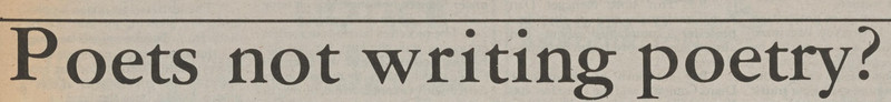 "Poets not writing poetry?" -- turns out that poets never have written poetry. It's all been a big scam. From The Gateway, 1982.