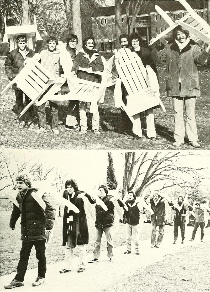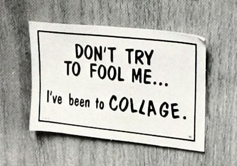 We, too, have been to collage and are therefore less easily fooled (though, admittedly, we find ourselves stuck to various materials). From Wake Forest's 1969 yearbook.