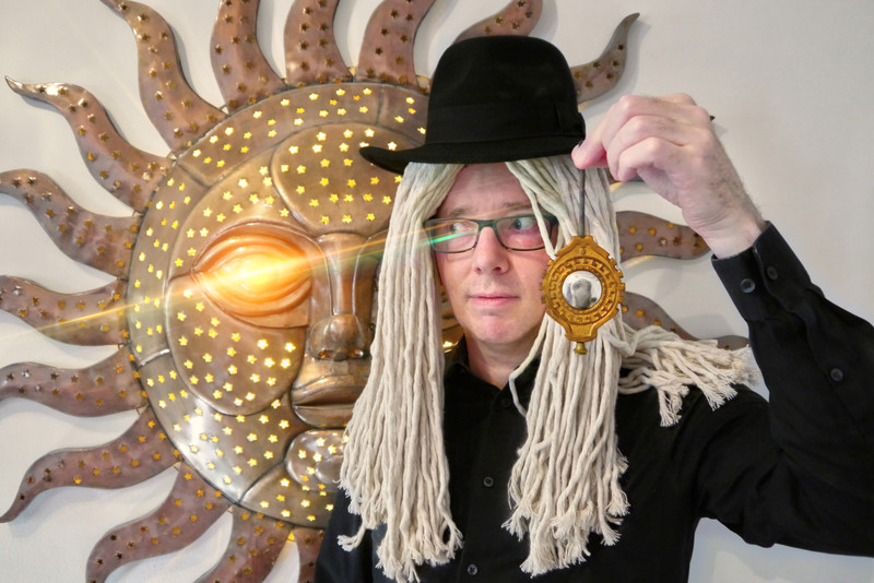 The pendulum, with its reflective sphere in the middle, is from a haunted grandfather clock we are restoring.