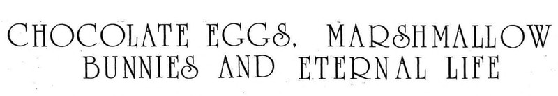 "Chocolate eggs, marshmallow bunnes and eternal life." From Woroni, 1981.