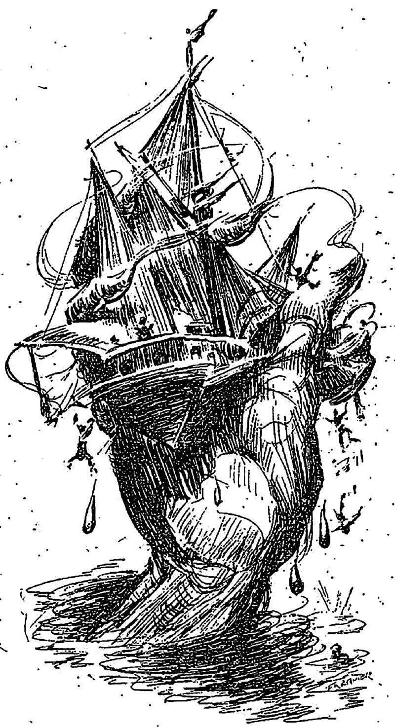 The equator making off. From The Runaway Equator by Lilian Bell and illustrated by Peter Newell, 1911.
