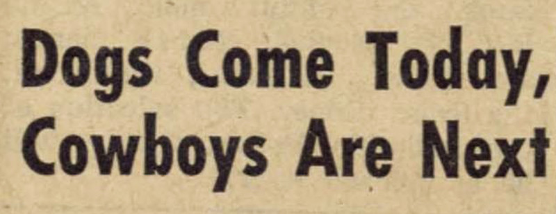 We find this to be true -- every time we see a dog, the next day a cowboy swaggers in. From The Current Sauce, 1957.