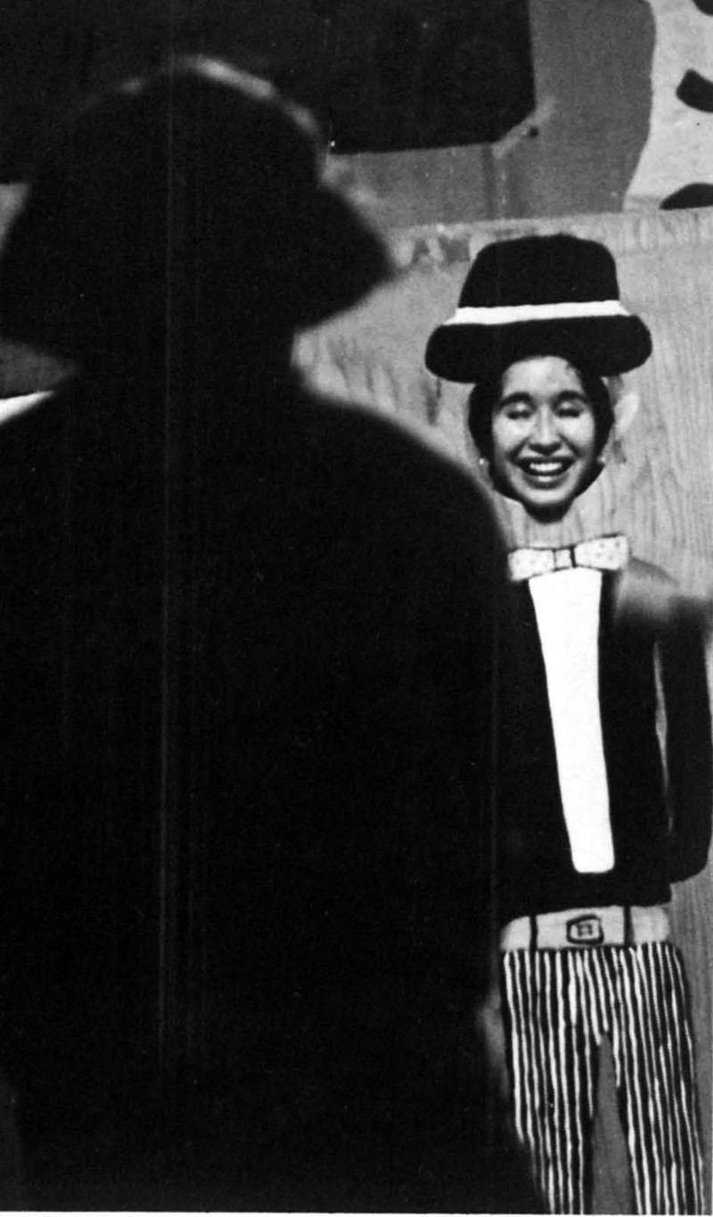 The lost art of standing behind furniture and thereby becoming invisible. From North Carolina Wesleyan's 1968 yearbook.