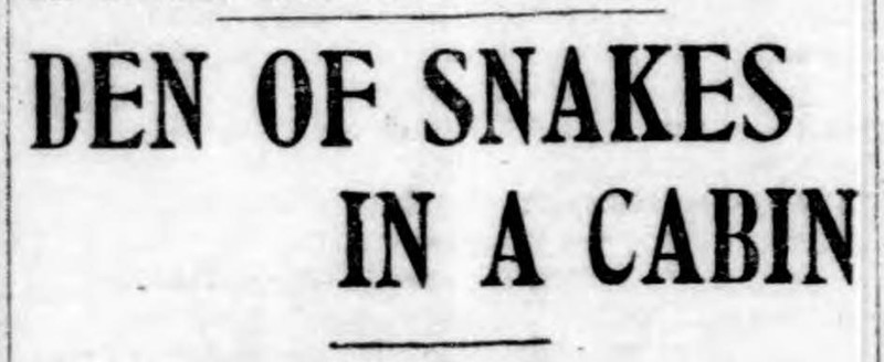 "Den of snakes in a cabin." From the Duluth Evening Herald, 1903.