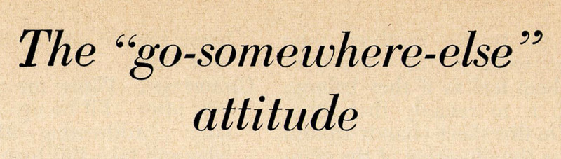 "The 'go-somewhere-else' attitude." From The Improvement Era, 1958.