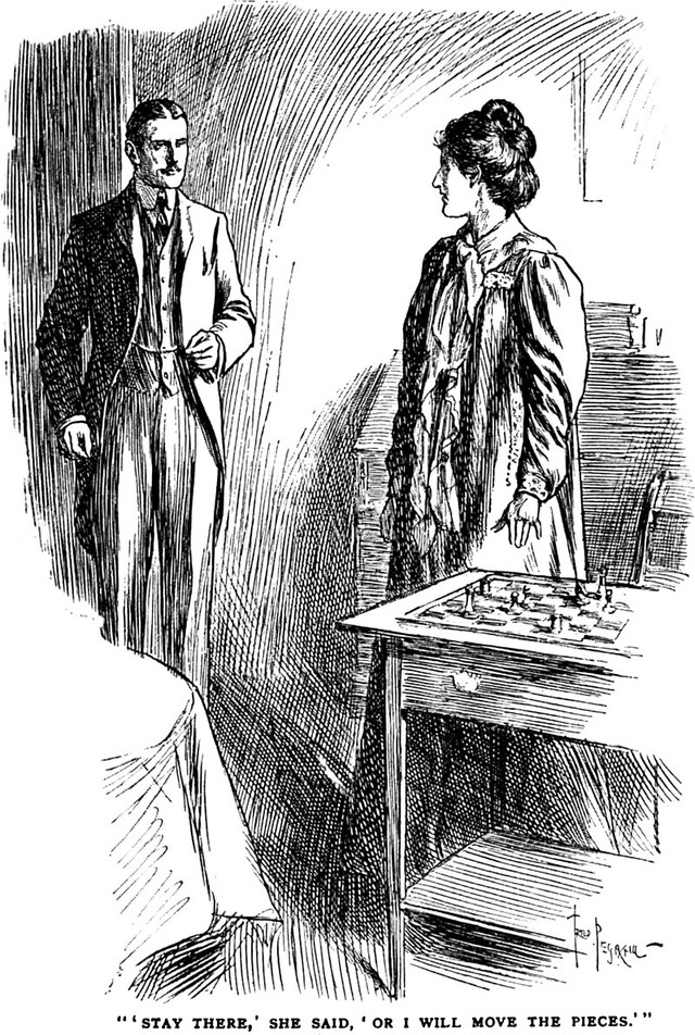 An illustration from a 1903 issue of The Windsor magazine. The caption reads: "The Presence seemed to gather round my head with a caress."