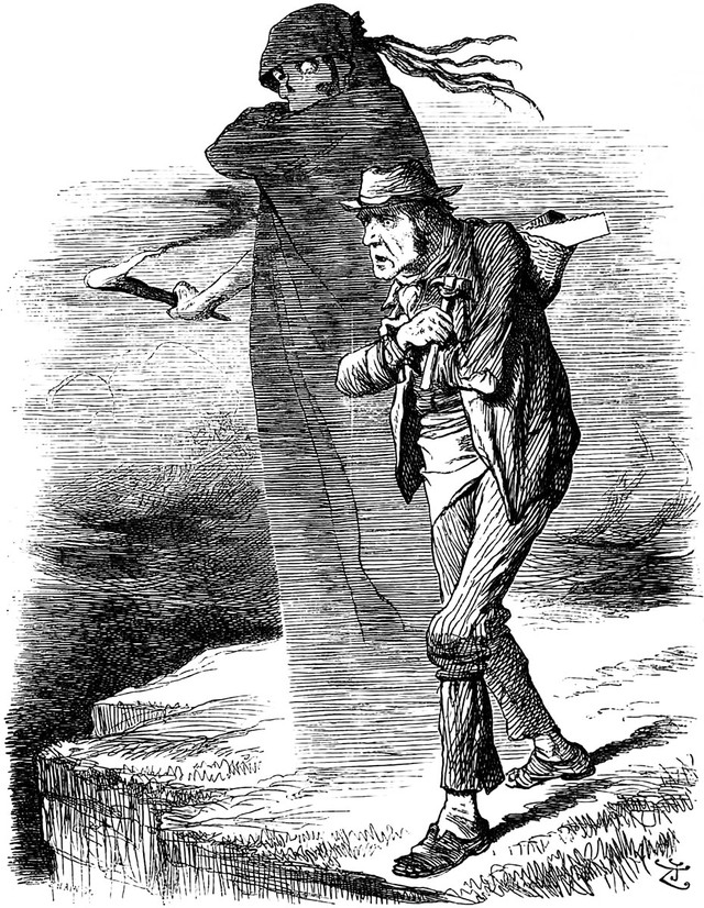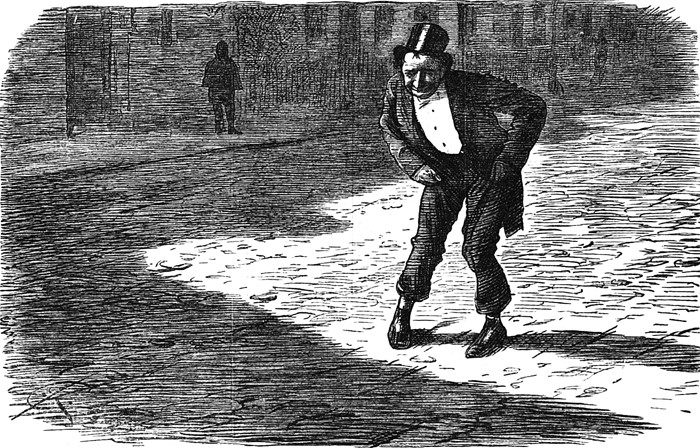 Wading through the shadows, from Punch, 1882.