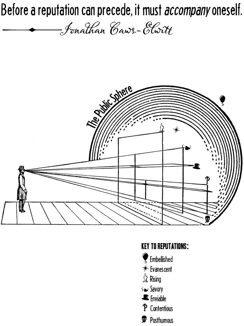 The text reads, "Before a reputation can precede, it must accompany oneself. —Jonathan Caws-Elwitt"