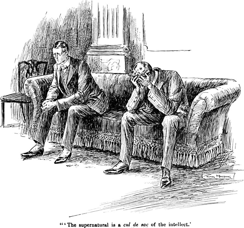 An illustration from a 1908 issue of The Windsor magazine. The caption reads: "The supernatural is a cul de sac of the intellect."