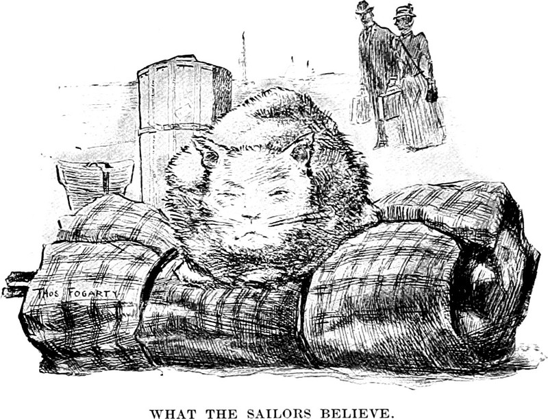 An illustration from Following the Equator by Samuel Langhorne Clemens (1897). The caption reads: "What the sailors believe."