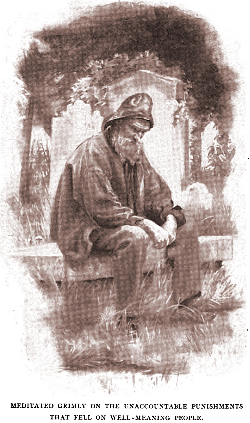 "Meditated grimly on the unaccountable punishments that fell on well-meaning people." From English Illustrated, 1897.