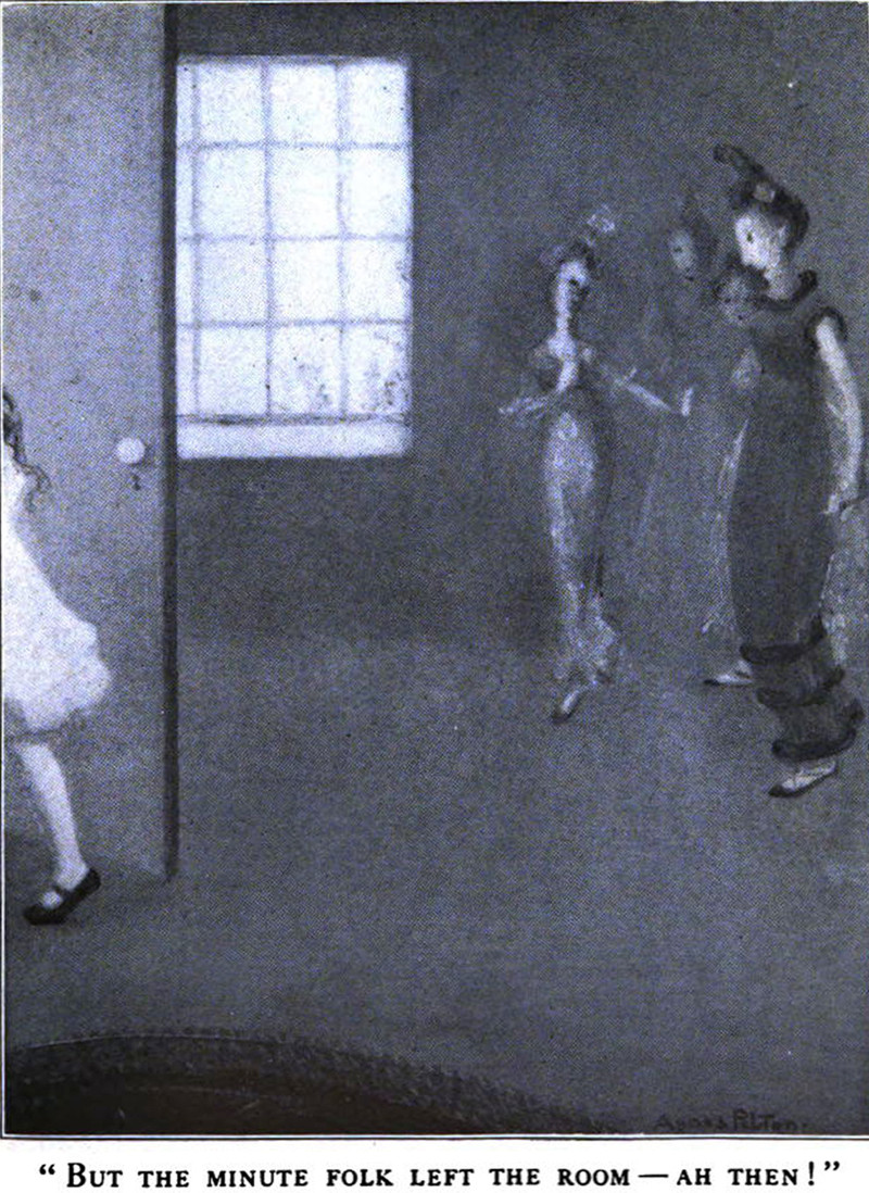 "But the minute folk left the room -- ah then!" From When I Was a Little Girl by Zona Gale and illustrated by Agnes Pelton, 1913.