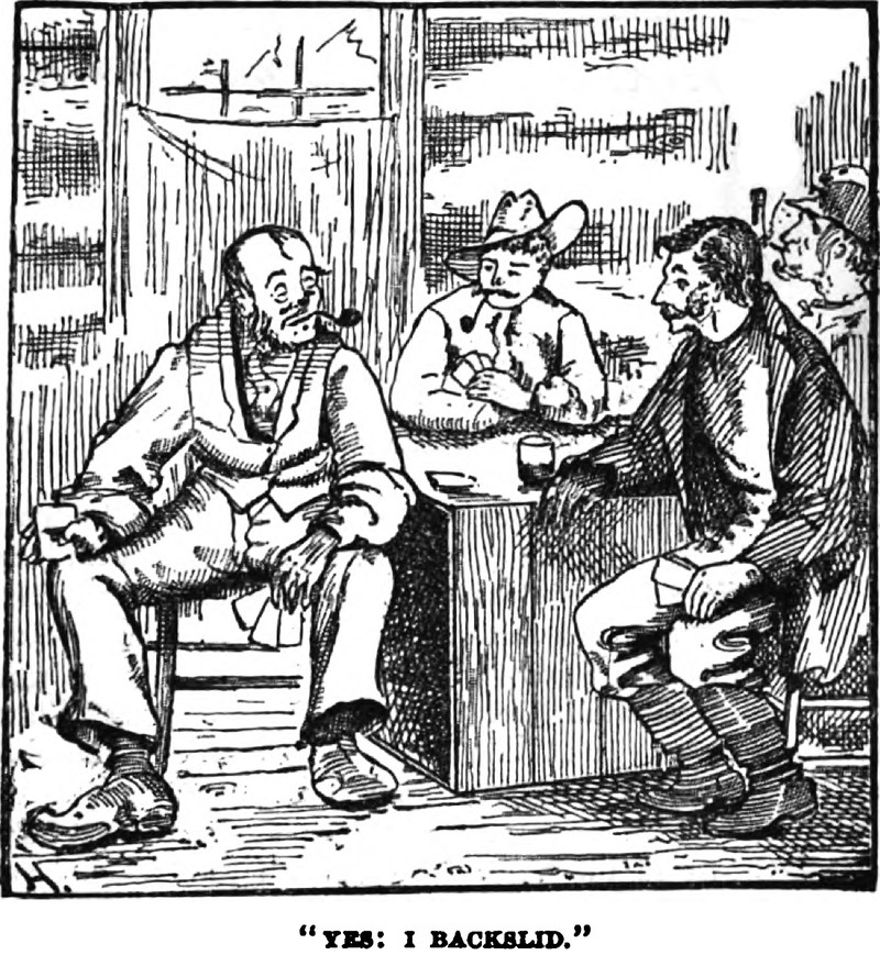 "Yes, I backslid." From Ballou's Monthly Magazine, 1879.