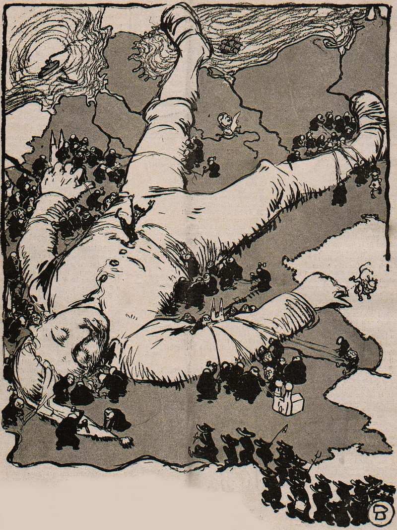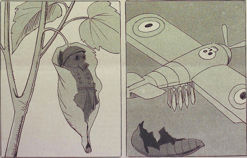 Auto exhaust cupids. (It doesn't just mean that love is exhausting. It's a reference to auto racer Lydston Grandville "Cupid" Hornsted.) From Le Régiment, 1913.