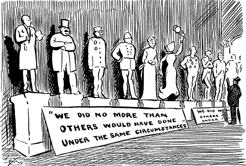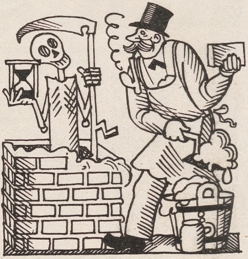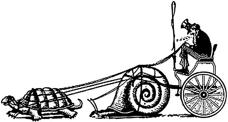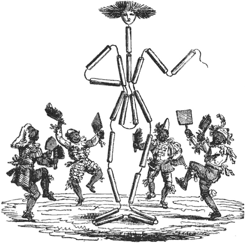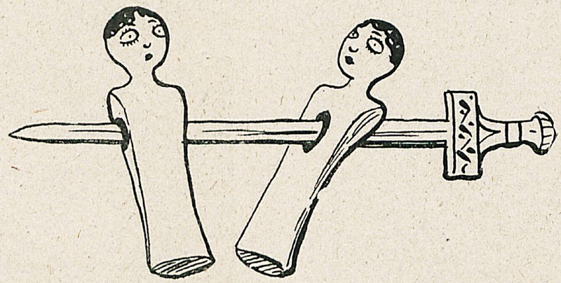In this game of Rock-Paper-Scissors, he beats only three folks playing Paper, and all those Rocks crush his Scissor-knife. From Le Courrier Français, 1886. See the Zen conversion of Rock-Paper-Scissors, Moon-Fish-Ocean.
