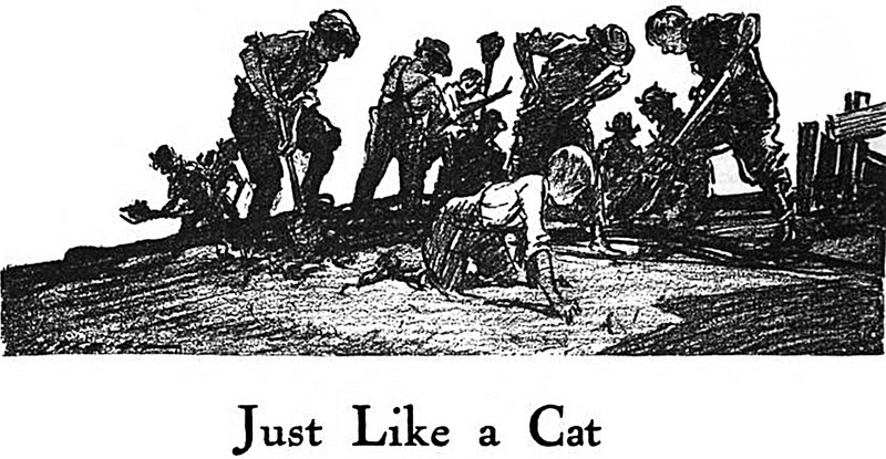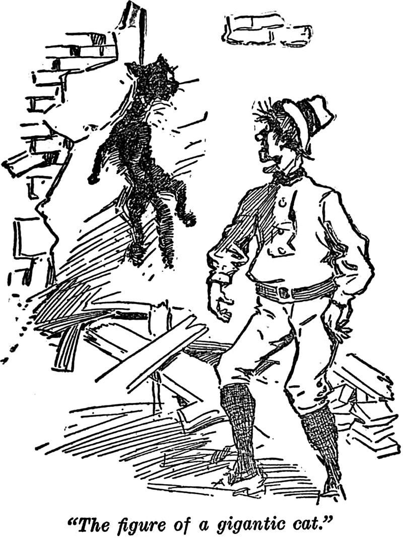 The cat here is rubbing an eye as if it can't believe it's seeing a ghost. Yet cats see ghosts all the time. From My Laughing Philosopher by Eden Phillpotts, 1896.