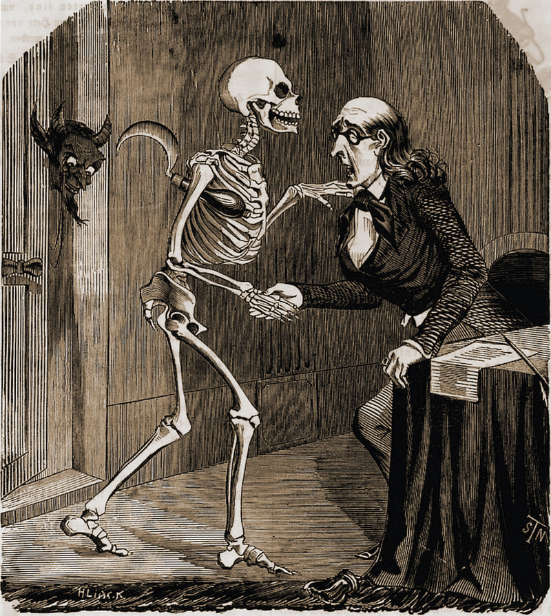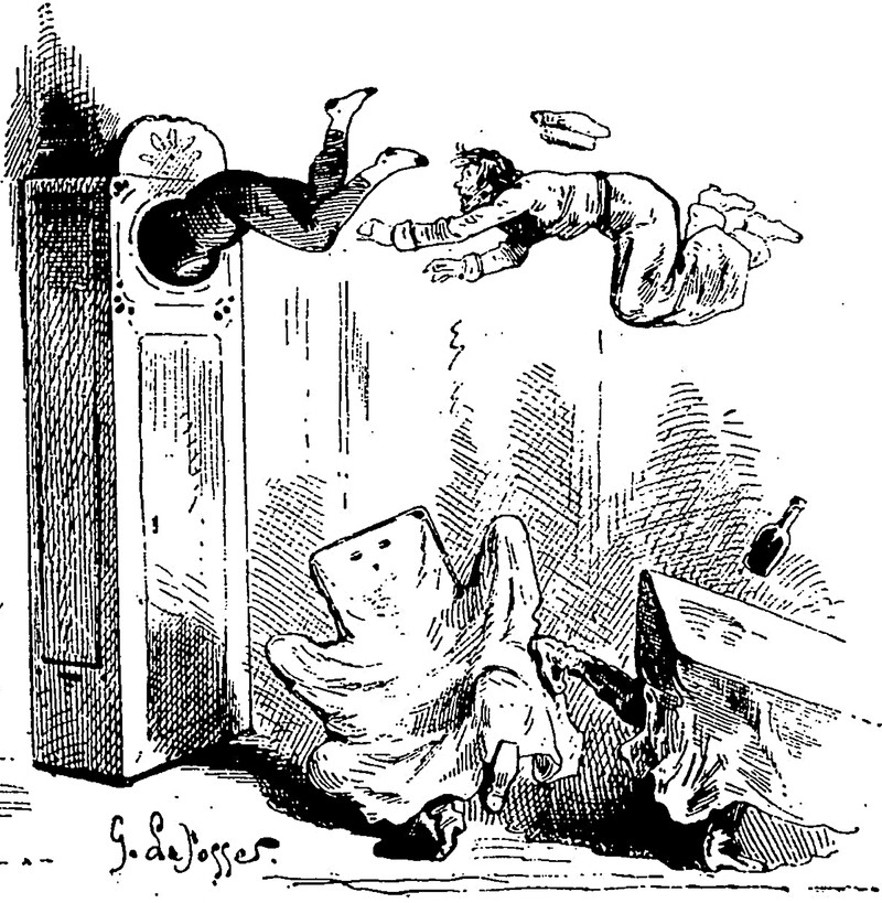 If your life today is unpredictable enough that you might possibly find yourself diving into a grandfather clock, over a chair with human feet that is disguised as a sheet ghost, then reblog. From Le Journal Amusant, 1876.