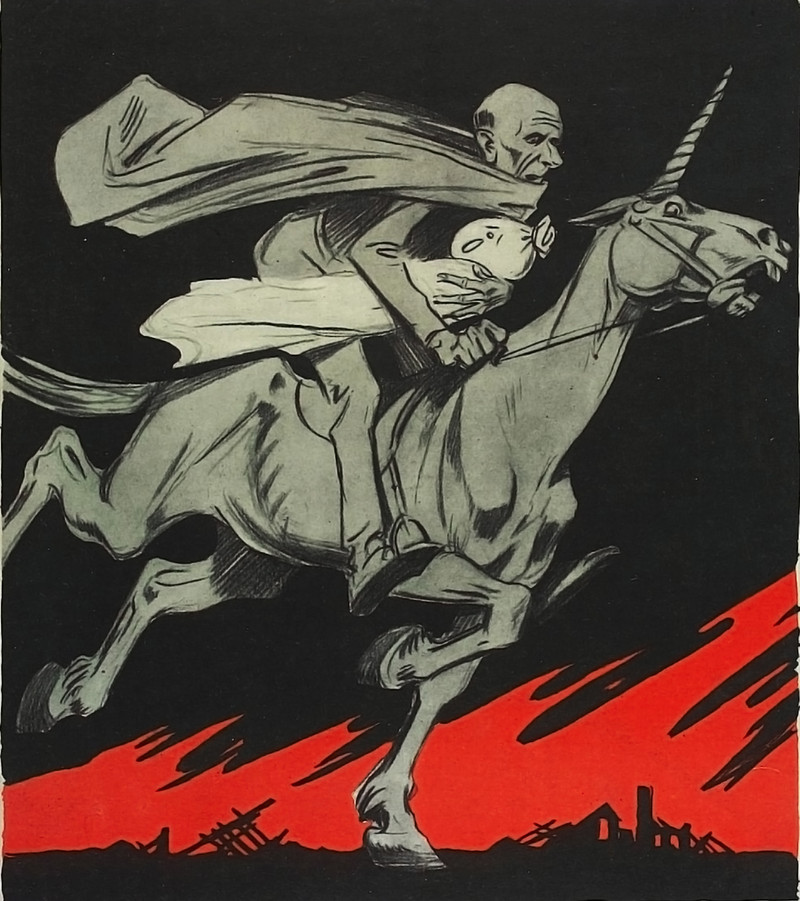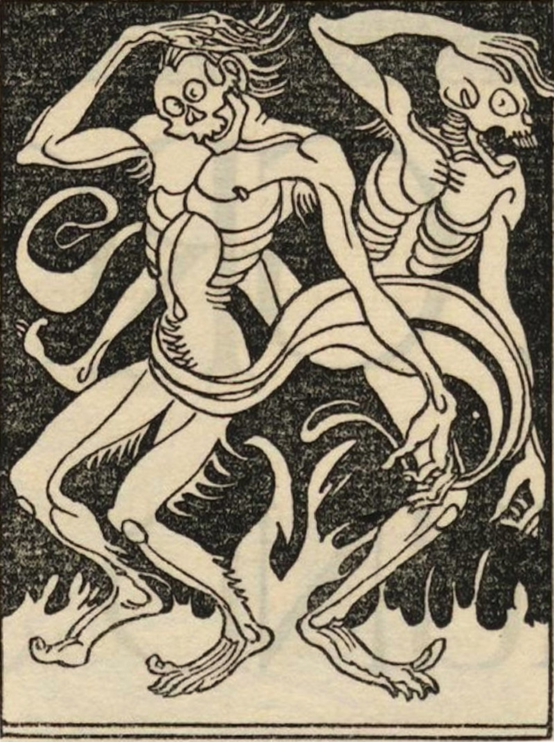 From Prof. Oddfellow's sketchbook. The two dark horns of non-existence: the horn of the ages before your birth, and the horn of the ages after your death. In Wolf Solent, John Cowper Powys says we must lay hold of those two cold, slippery horns and plough on. For more about this, see our video about how to bring your own ghost to a spooky old house.