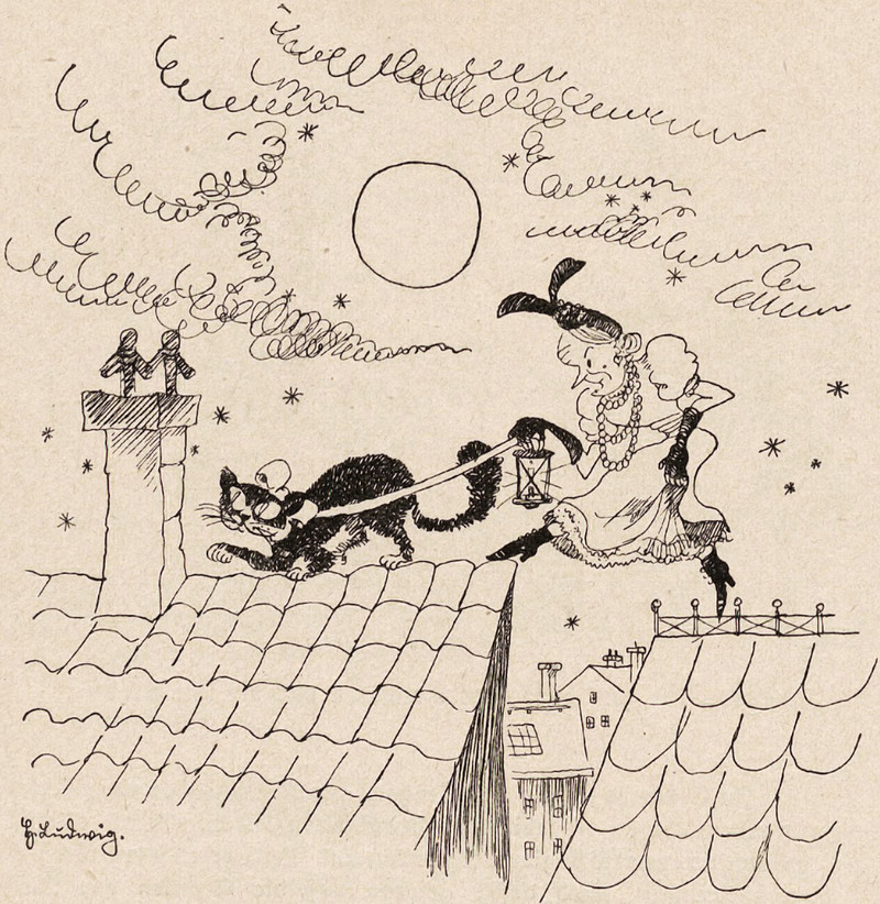 "Again the moon seemed to have eyes and mouth, as it is depicted in the almanac, and to be entering into conversation with the poor mortal." From Timar's Two Worlds by Maurus Jokai and translated by Hegan Kennard, 1899.