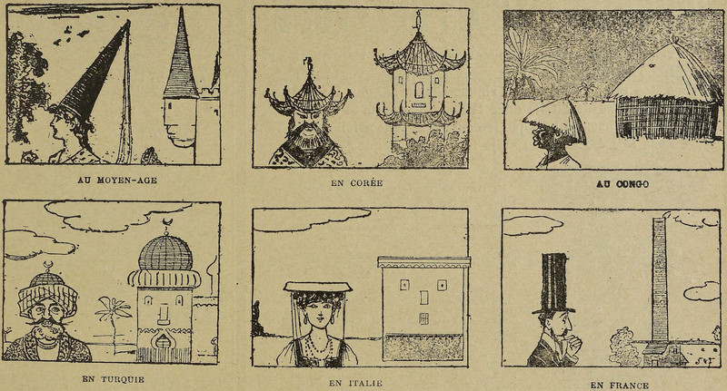 Here are the patron saints of hot chocolate. (We think it's the saint of cocoa in the front, with the saints of marshmallows, cream, and sugar in the back.) From Le Journal Amusant, 1898.