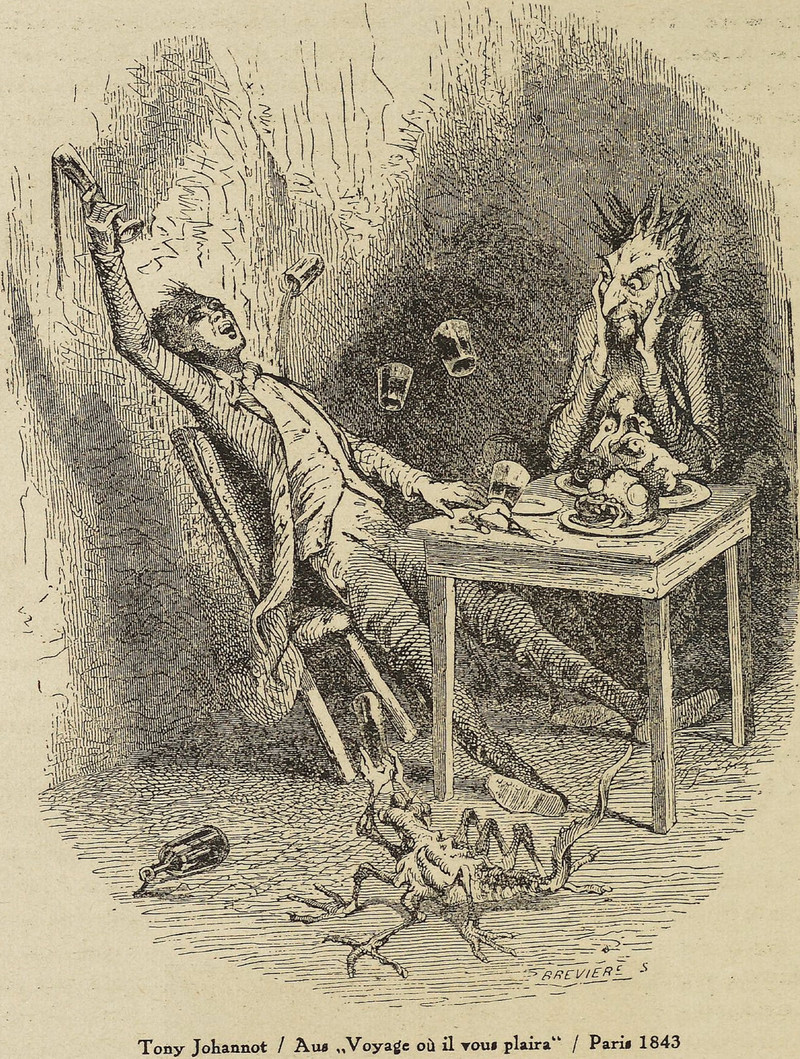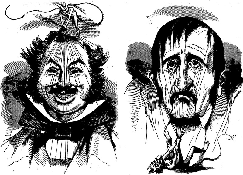 You've heard that a smile is a frown turned upside down, but the part they tend to leave out is what, exactly, does the turning. Demons. From Le Journal Pour Rire, 1852.