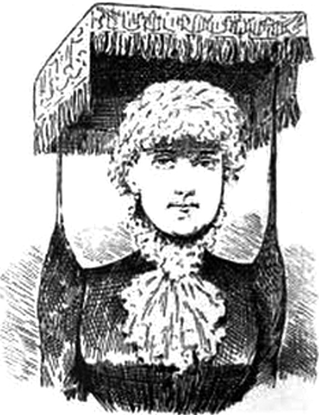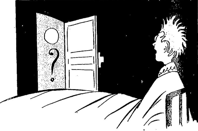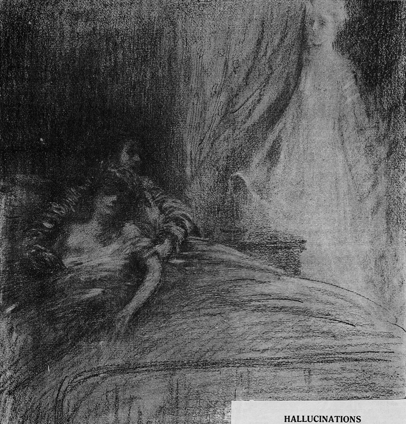 An optical illusion: "If you will look at this face, just below the eyebrows, for a few seconds, you will find its eyes opening and staring at you sadly in return." From The Strand, 1908.