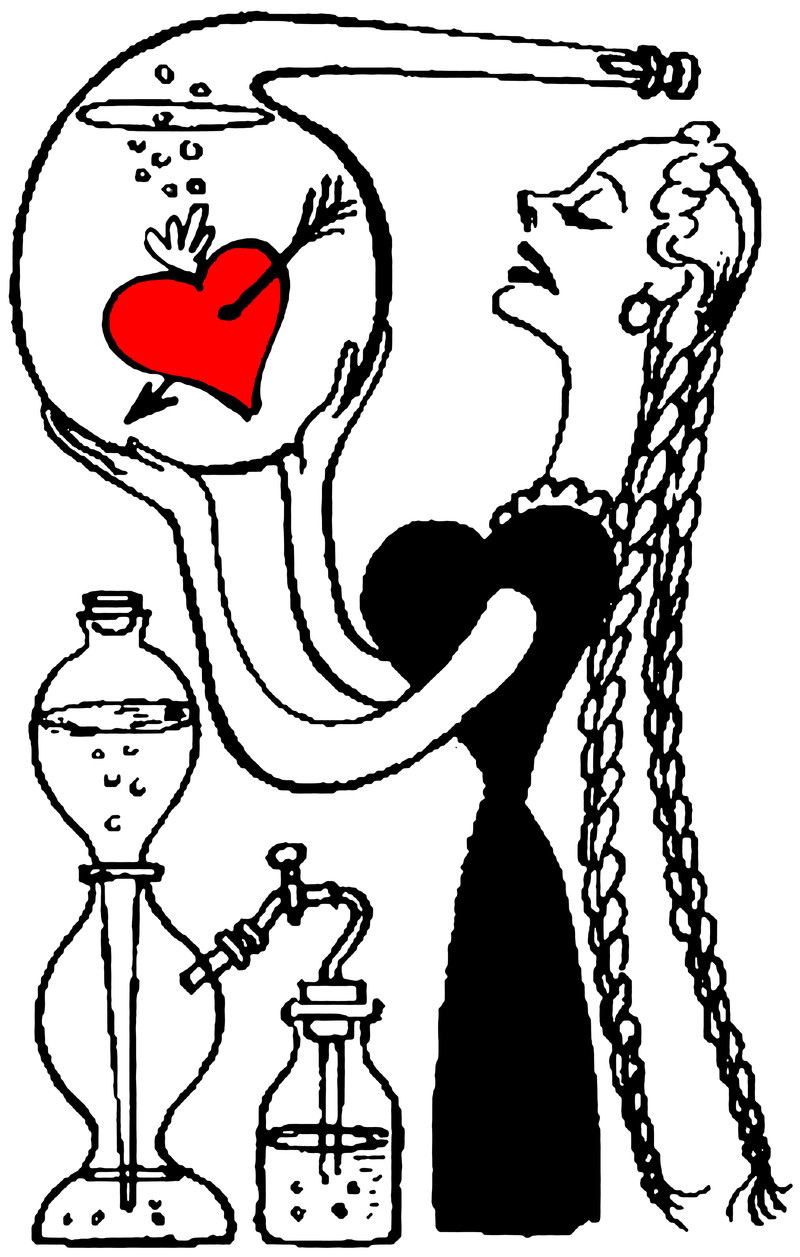 Father Time mixes up some love and hatred, health and sickness, joy and sorrow, wisdom and folly, play and work, and some secret ingredients. From The Judge, 1912.
