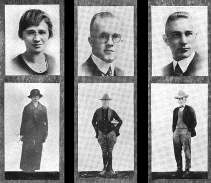 We hereby share, with some trepidation, our discovery of three actual ghosts trapped within The Oregana yearbook of the Univeristy of Oregon, 1920. Note how the figure on the left is floating out of the frame, the strange lean in her posture giving away the fact that she is incorporeal. And note how the figure in the middle has no face, while the figure on the right has only black eyeholes. Old books can be full of ghosts, without question. Be careful where you go. For invaluable tips on how to tap into the occult power of old yearbooks, see How to Hoodoo Hack a Yearbook.
