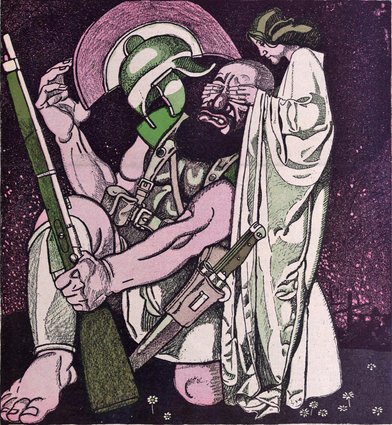Rare to see Uncle Sam in armor. From Nebelspalter, 1917.