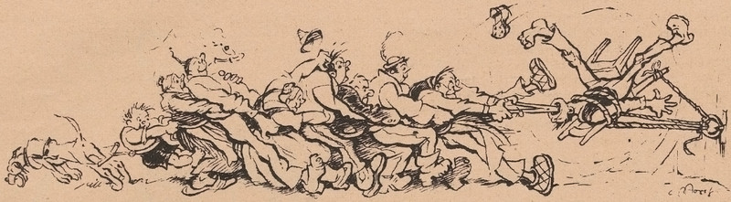 We've all seen the "stepping in a bucket" sight gag, but few these days are audacious enough to do it the original way -- down a well. From Chatterbox, 1909.