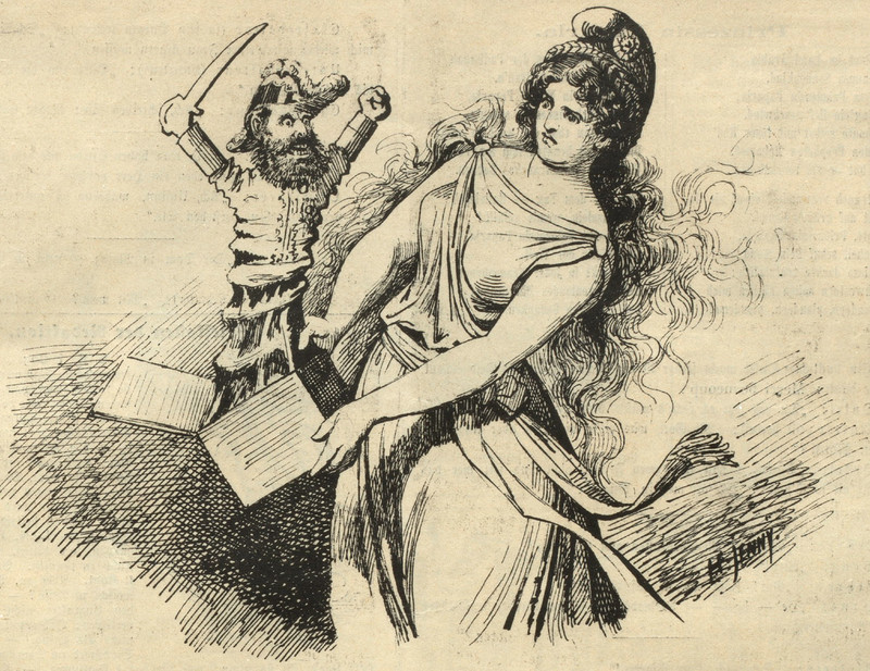 "'Will you walk into my parlor?' said the spider to the fly." From Purdue's 1893 yearbook.