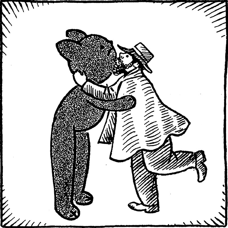 A squirrel dances a waltz with sugar tongs. From Wide Awake, 1884.