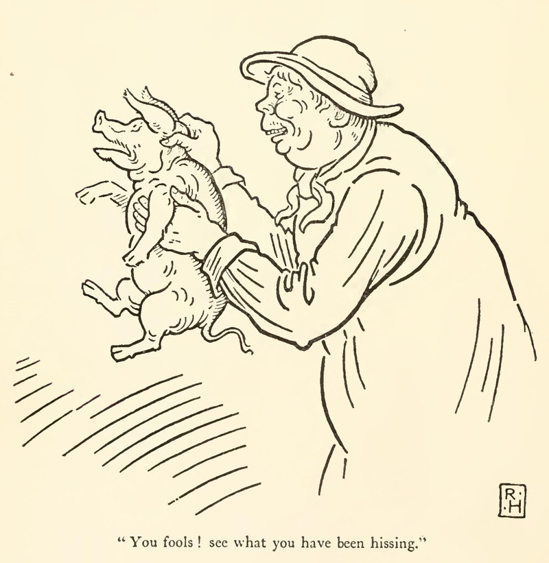 It's an enduring question: "Is that man teaching the pig to laugh, as I am being taught, and is the pig's laugh a success?" From The Moon Prince by Richard Kendall Munkittrick, 1893.