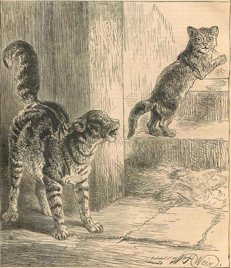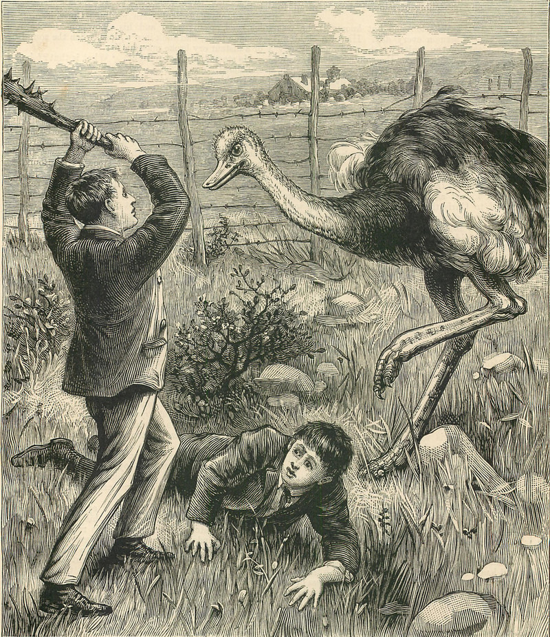 Gander versus gamecock: which would you wager for the win? From Chatterbox, 1879.